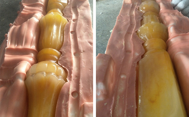 廣西桂林建材裝潢廠首要出產歐式構件建材,樓梯扶手,圍欄等,其利用我司耐低溫液體摸具蛙膠建造硅膠模具停止批量復制出產。建造仿玉扶手圍欄接納玉玉石粉、瑪瑙粉或樹脂等質料,這些質料在建造扶手與圍欄都是須要低溫以是挑選模具資料也是要耐低溫能力建造出制品。